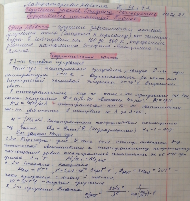 Лабораторная работа К: Изучение закона Стефана-Больцмана и определение постоянной Планка вариант 11