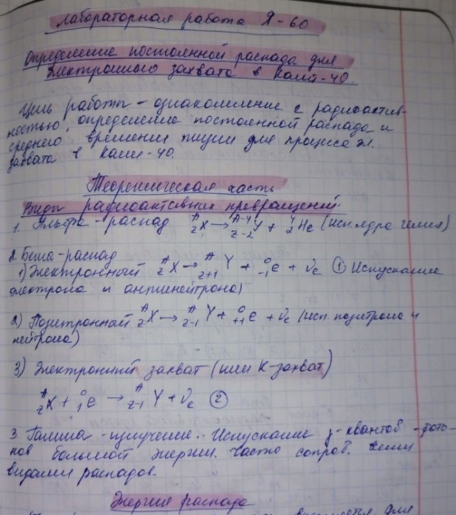 Для студентов МГТУ им. Н.Э.Баумана по предмету ФизикаОпределение постоянной распада для электронного захвата в калии-40Определение постоянной распада для электронного захвата в калии-40
