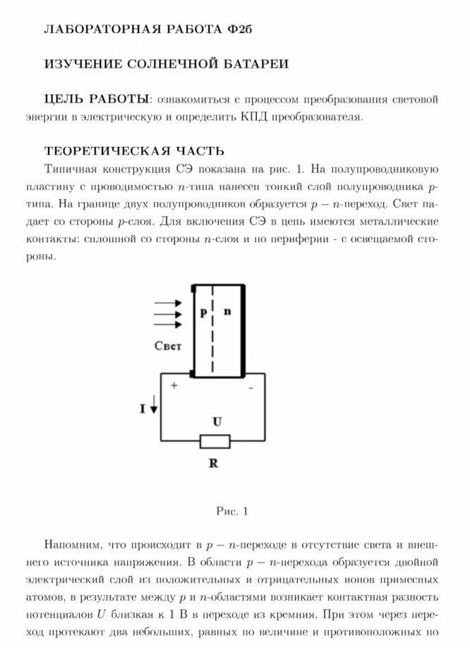Для студентов МГТУ им. Н.Э.Баумана по предмету ФизикаИзучение солнечной батареиИзучение солнечной батареи