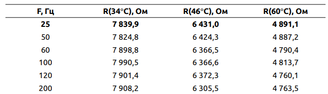 Ход работы: 1. Подключаем к сети вольтметр и измеритель иммитанса, прогреваем их. 2. Настраиваем вольтметр на измерение температуры образца. 3. Настраиваем измеритель иммитанса на измерение частоты внешнего поля и электросопротивления феррита. 4. Измеряем частотную зависимость сопротивления феррита при комнатной температуре. 5. Включаем питание печки, прогреваем образец и измеряем частотную зависимость электросопротивления феррита для 3 различных температур: ![]()