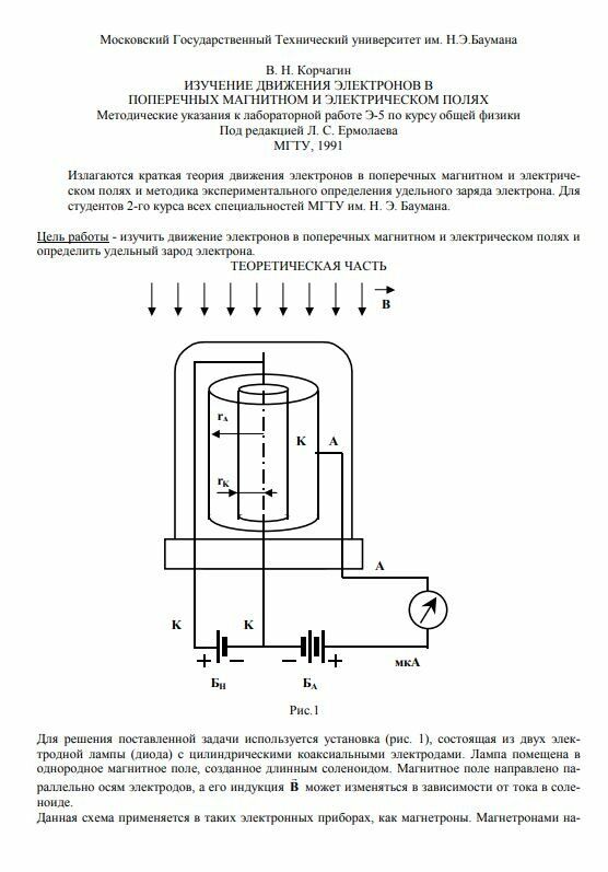 Для студентов МГТУ им. Н.Э.Баумана по предмету ФизикаИзучение движения электронов в поперечных магнитном и электрическом поляхИзучение движения электронов в поперечных магнитном и электрическом полях