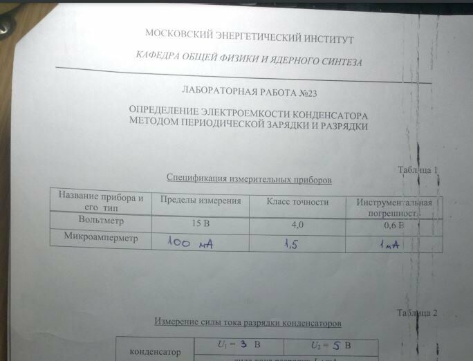 Для студентов НИУ «МЭИ» по предмету ФизикаЛаботарная работа №23 - Определение электроёмкости конденсатора методом периодической зарядки и разрядкиЛаботарная работа №23 - Определение электроёмкости конденсатора методом периодической зарядки и разрядки