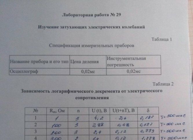 Лабораторная работа 29: Лабораторная №29 (Изучение затухающих электрических колебаний)