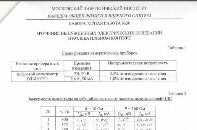 Для студентов НИУ «МЭИ» по предмету ФизикаЛабораторная работа №30 (Изучение вынужденных электрических колебаний в колебательном контуре)Лабораторная работа №30 (Изучение вынужденных электрических колебаний в колебательном контуре)