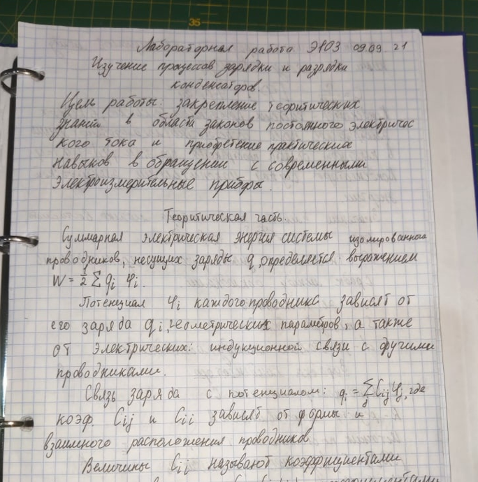 ВВЕДЕНИЕ: процессы зарядки и разрядки конденсатора относятся к классическим примерам, изучаемым в начальный период освоения законов электромагнетизма. При проведении лабораторной работы студенты знакомятся с основными физическими величинами теории электричества: электрический заряд, потенциал, напряженность, электрическое напряжение, сила и плотность тока, электрическое сопротивление и проводимость, электрическая емкость, энергия и мощность. Изучаемые процессы обладают наглядностью, что делает их доступными для понимания и усвоения.