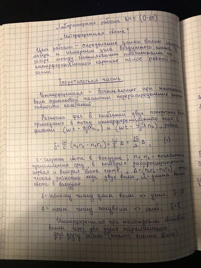 Лабораторная работа О: Интерференция света вариант 65