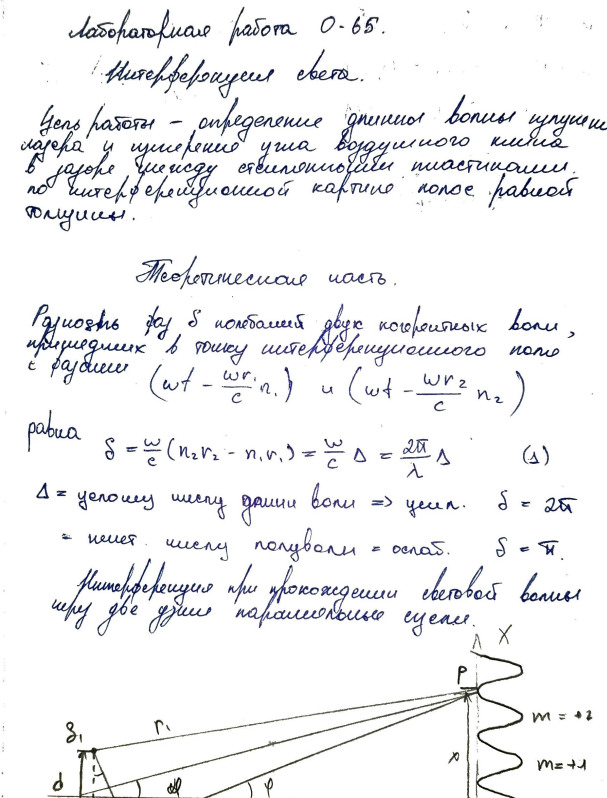 ЦЕЛЬ РАБОТЫ: определение длины волны излучения лазера и измерение угла воздушного клина в зазоре между стеклянными пластинами по интерференционной картине полос равной толщины.