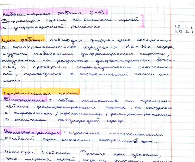 Лабораторная работа О: Дифракция света на системе щелей и дифракционной решетке вариант 78