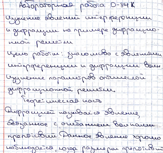 Лабораторная работа О: Изучение явлений интерференции и дифракции на примере дифракционной решетки вариант 84