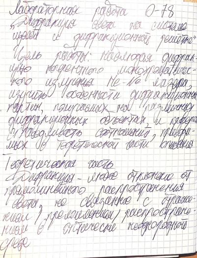 Лабораторная работа О: Дифракция света на системе щелей и дифракционной решетке вариант 78