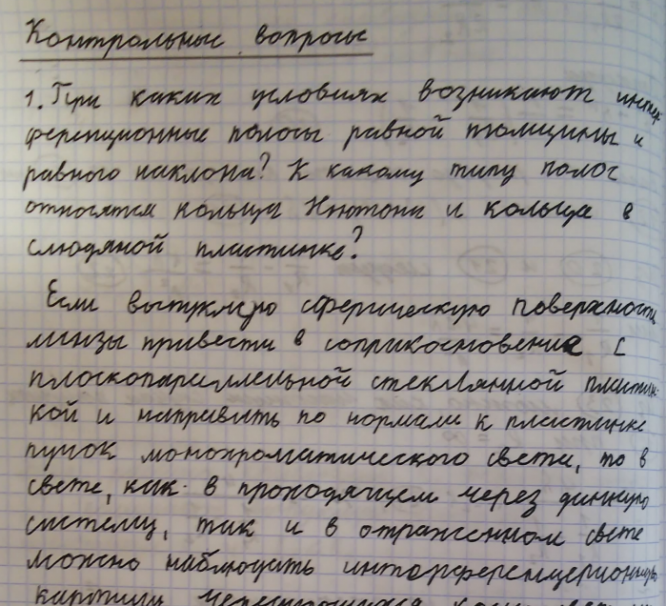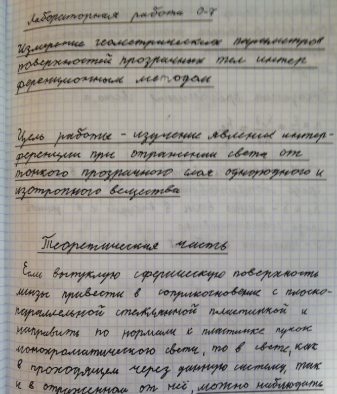 Главная » Учебные материалы » Физика » Лабораторные работы » МГТУ им. Н.Э.Баумана » 3 семестр » Номер О » Вариант 7 » Интерференция в тонких пленках. Определение геометрических параметров поверхностей прозрачных тел интерференционным методом