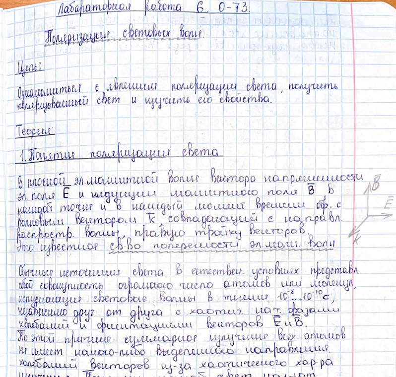 Лабораторная работа О: Поляризация световых волн вариант 73