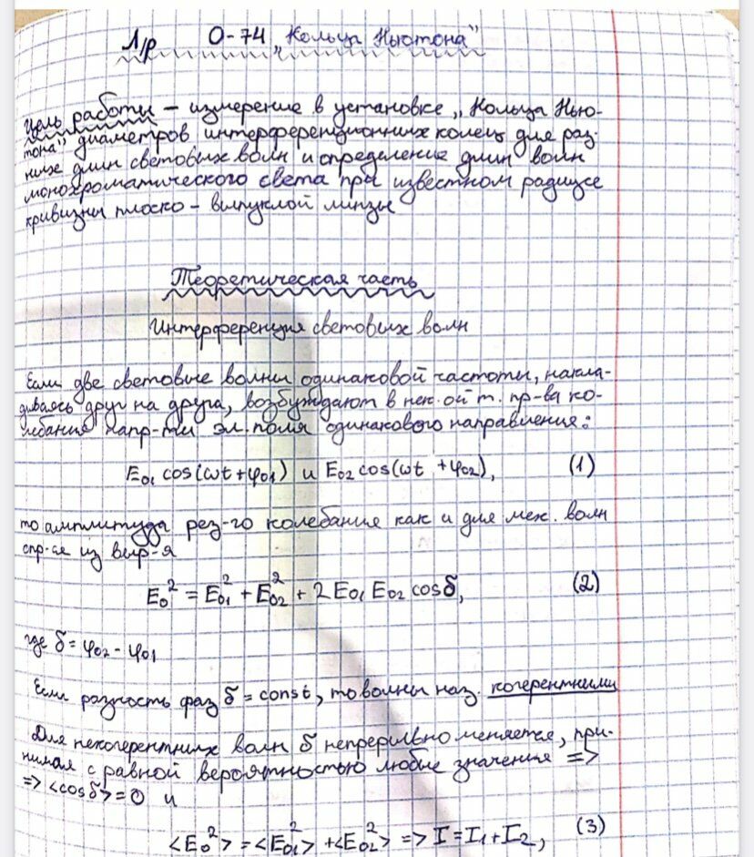 Лабораторная работа О: Кольца Ньютона вариант 74