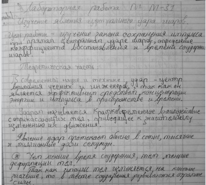 Лабораторная работа М: Изучение явления центрального удара шаров вариант 31