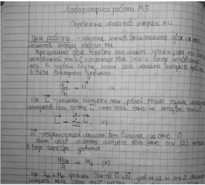 Лабораторная работа М: Определение моментов инерции тел вариант 5