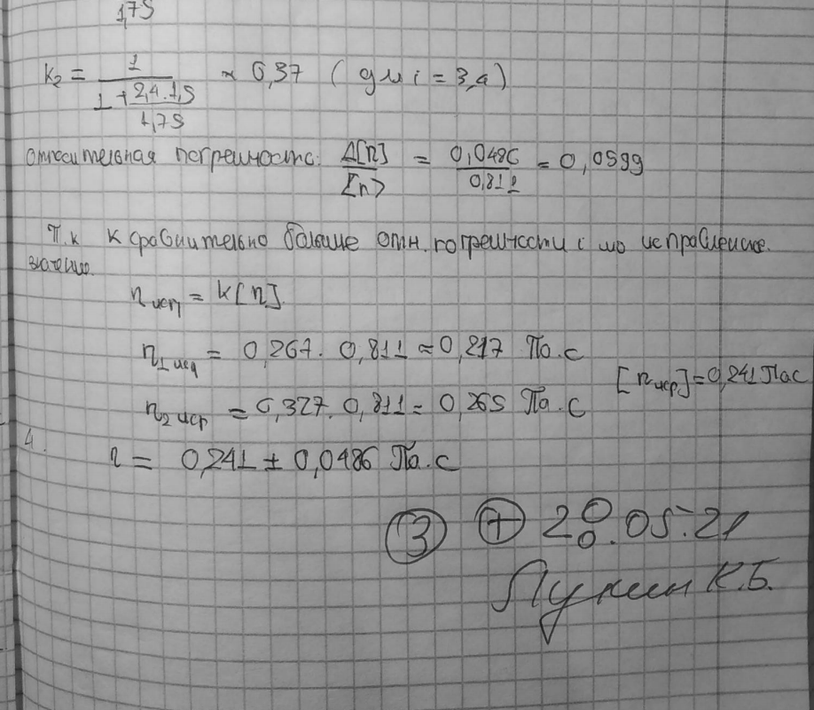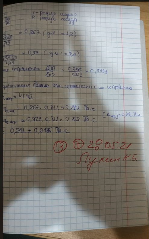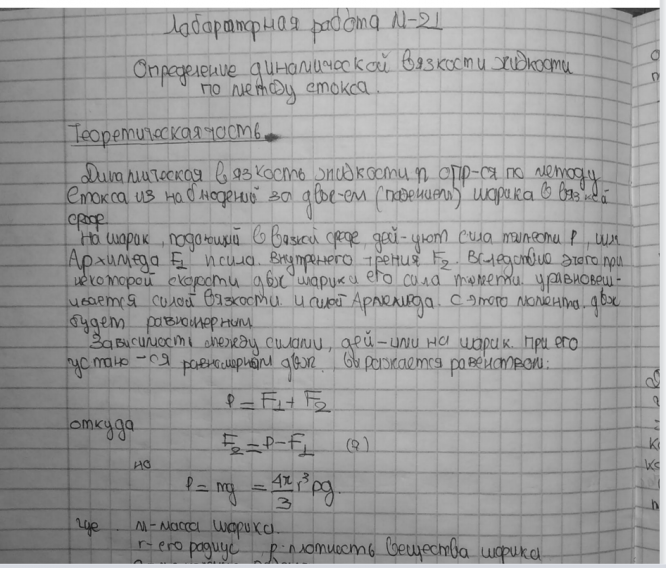 Лабораторная работа М: Определение динамической вязкости жидкости по методу Стокса вариант 21
