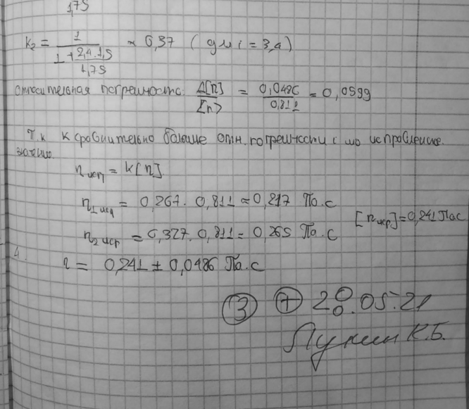 Главная » Учебные материалы » Физика » Лабораторные работы » МГТУ им. Н.Э.Баумана » 2 семестр » Номер М » Вариант 21 » Определение динамической вязкости жидкости по методу Стокса