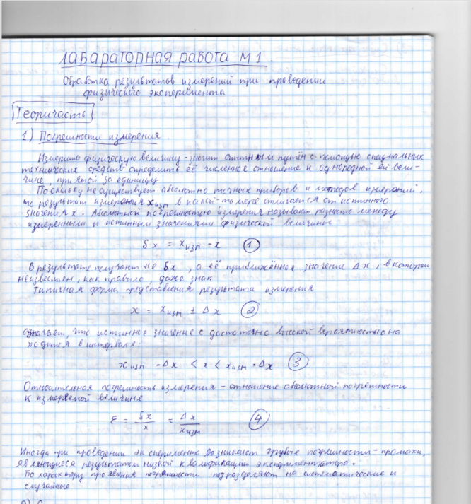 Лабораторная работа М: Обработка результатов измерений при проведении физического эксперимента вариант 1