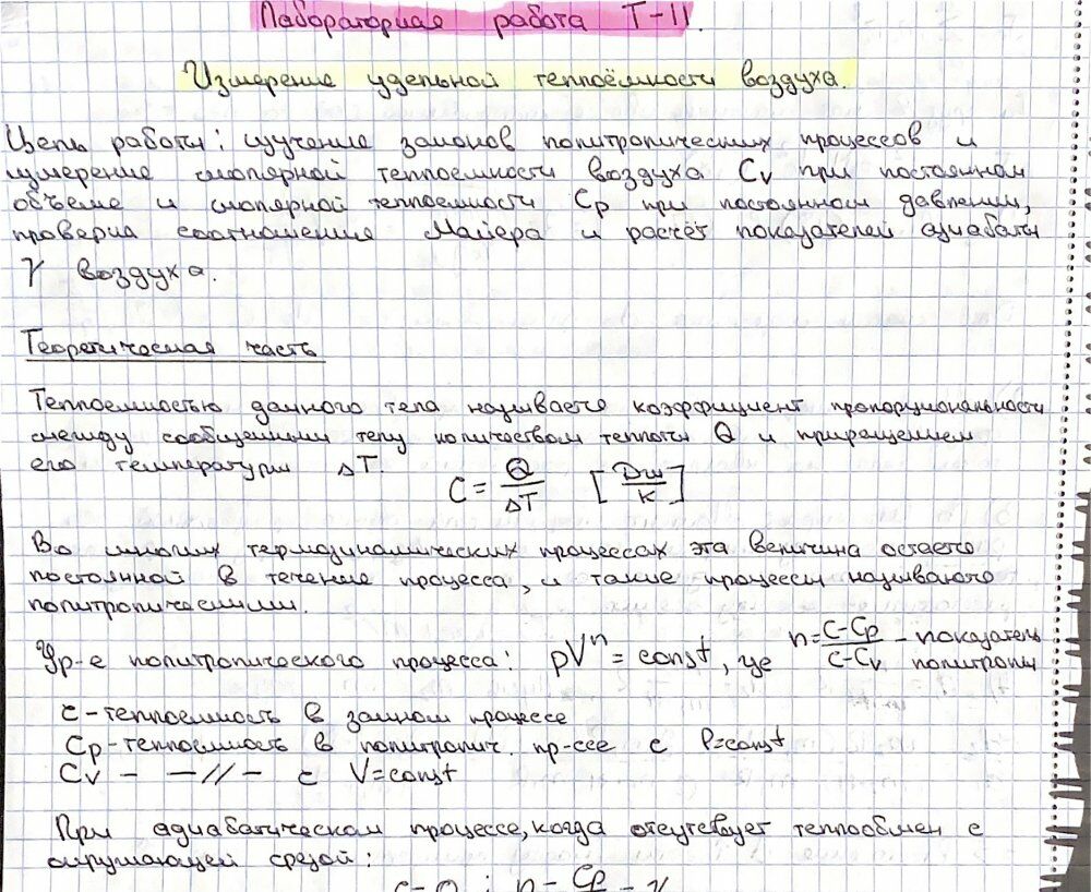 Лабораторная работа Т: Измерение удельной теплоемкости воздуха вариант 11