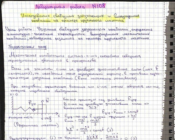 Для студентов МГТУ им. Н.Э.Баумана по предмету ФизикаИсследование свободных затухающих колебаний и вынужденных колебаний на примере крутильного маятникаИсследование свободных затухающих колебаний и вынужденных колебаний на примере крутильного маятника