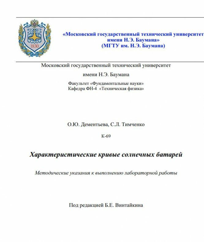 Для студентов МГТУ им. Н.Э.Баумана по предмету ФизикаХарактеристические кривые солнечных батарейХарактеристические кривые солнечных батарей
