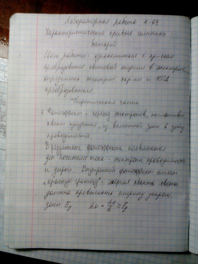 Лабораторная работа К: Характеристические кривые солнечных батарей вариант 69