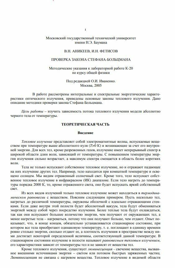 Для студентов МГТУ им. Н.Э.Баумана по предмету ФизикаПроверка закона Стефана-БольцманаПроверка закона Стефана-Больцмана