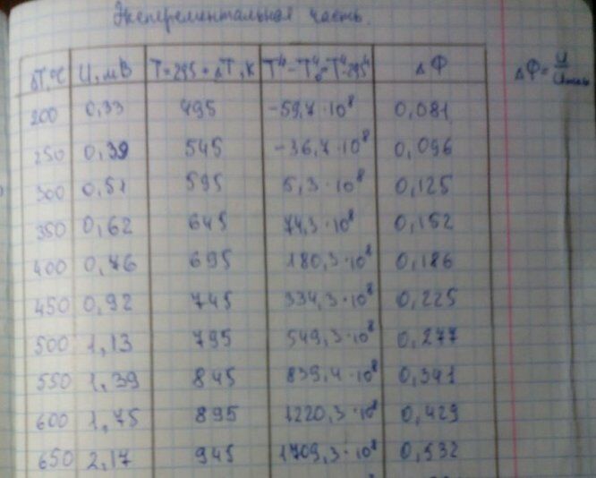 Лабораторная работа К: Проверка закона Стефана-Больцмана вариант 20