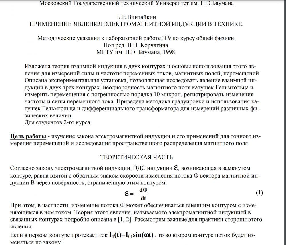 Главная » Учебные материалы » Физика » Лабораторные работы » МГТУ им. Н.Э.Баумана » 3 семестр » Номер Э » Вариант 9 » Применение явления электромагнитной индукции в технике