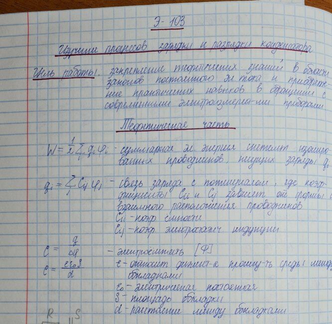 Лабораторная работа Э: Изучение процессов зарядки и разрядки конденсатора вариант 103