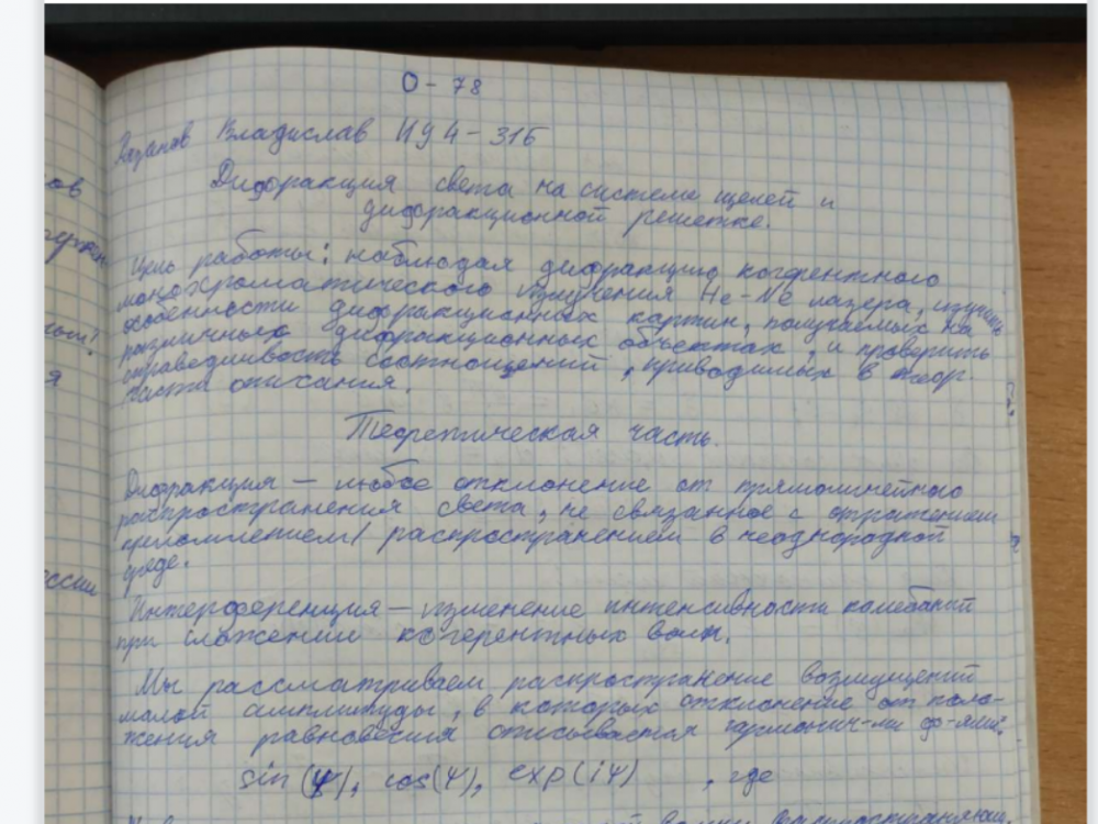 Лабораторная работа О: Дифракция света на системе щелей и дифракционной решетке вариант 78