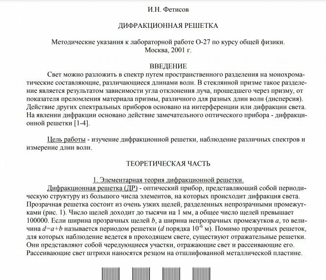 Лабораторная работа О: Дифракционная решетка вариант 27
