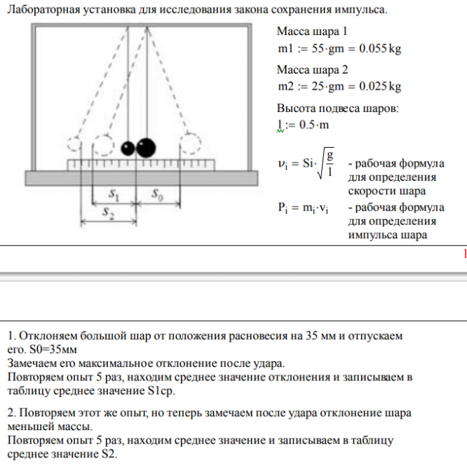 Цель работы: проверить действие закона сохранения импульса на примере прямого упругого соударения шаров.