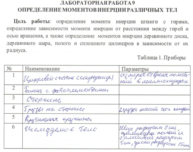 Главная » Учебные материалы » Физика » Лабораторные работы » НИУ «МЭИ» » 1 семестр » Номер 9д » 9Д - Определение моментов инерции различных тел