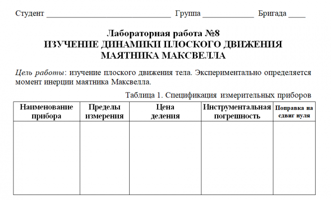 Главная » Учебные материалы » Физика » Лабораторные работы » НИУ «МЭИ» » 1 семестр » Номер 8 » Изучение динамики плоского движения маятника Максвелла