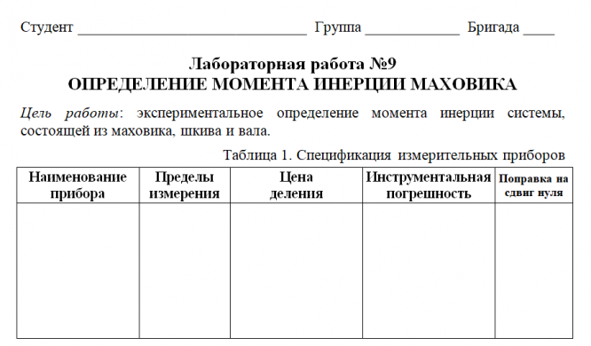 Главная » Учебные материалы » Физика » Лабораторные работы » НИУ «МЭИ» » 1 семестр » Номер 9 » Определение момента инерции маховика