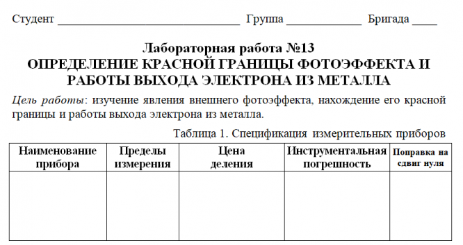 Главная » Учебные материалы » Физика » Лабораторные работы » НИУ «МЭИ» » 3 семестр » Номер 13 » Определение красной границы фотоэффекта и работы выхода электрона из металла