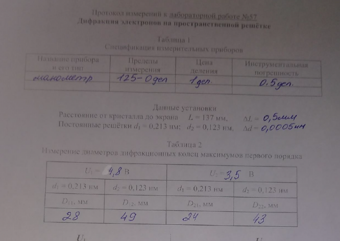 Лабораторная работа 57: Дифракция электронов на пространственной решетке