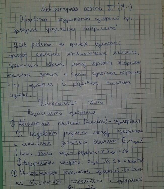 Лабораторная работа М-1 - Обработка результатов измерений при проведении физического эксперимента