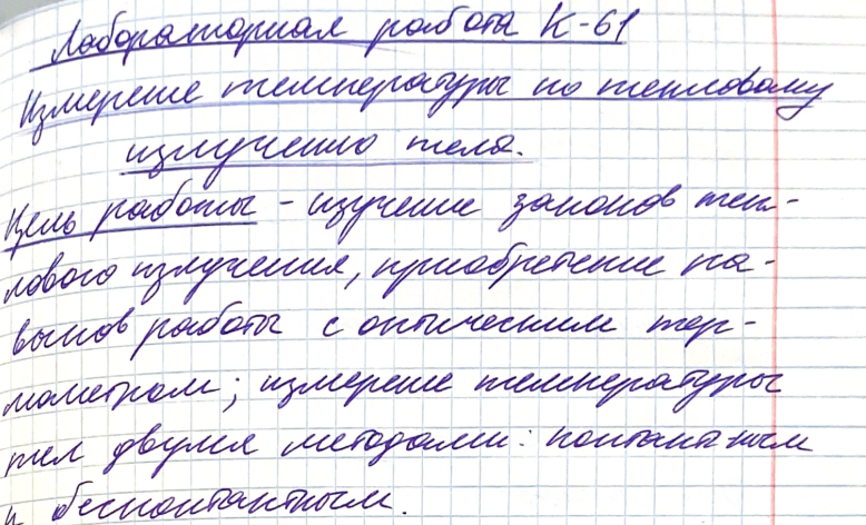 Лабораторная работа К: Измерение температуры по тепловому излучению тела вариант 61