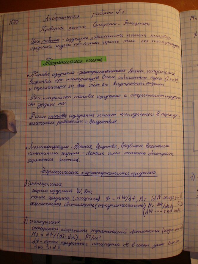 Лабораторная работа К: Проверка закона Стефана-Больцмана вариант 20