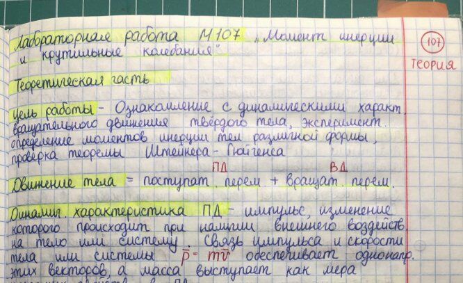 Лабораторная работа М: Момент инерции и крутильные колебания вариант 107
