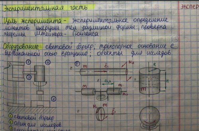 Цель работы. Ознакомление с динамическими характеристиками вращательного движения твёрдого тела, экспериментальное определение моментов инерции тел различной формы , проверка теоремы Штейнера-Гюйгенса.