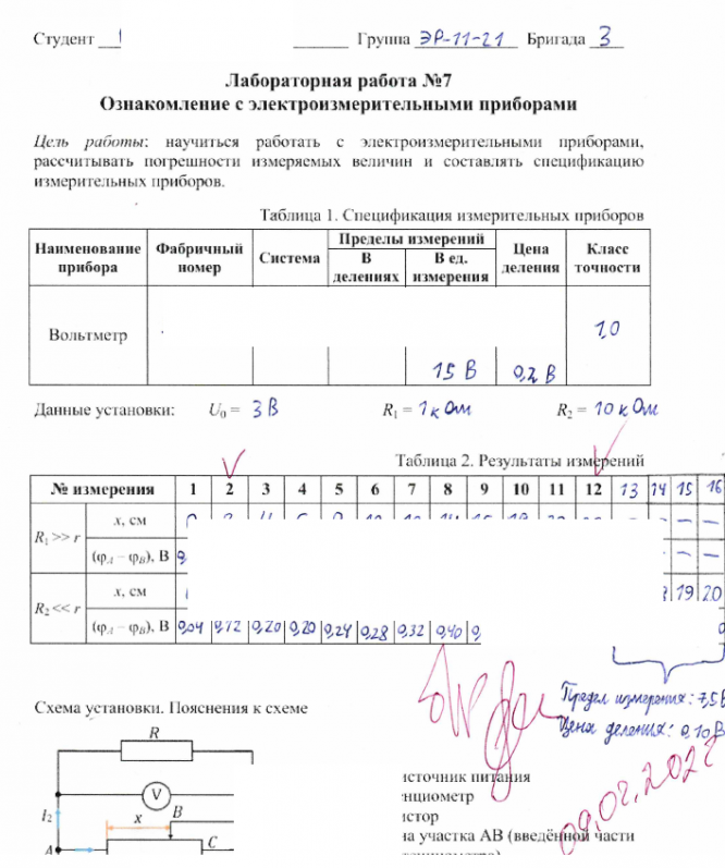 Зачтенная лабораторная работа по физике №7 "Ознакомление с электроизмерительными приборами"