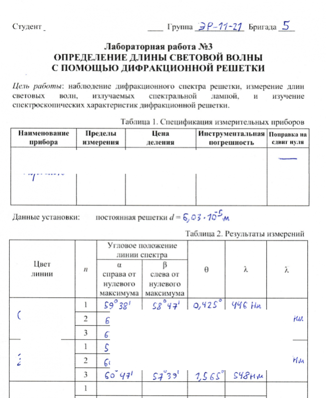 Зачтенная лабораторная работа по физике №3 "Определение длины световой волны с помощью дифракционной решётки"