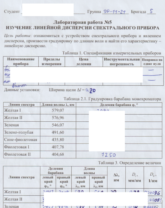 Зачтенная лабораторная работа по физике №5 "Изучение линейной дисперсии спектрального прибора"