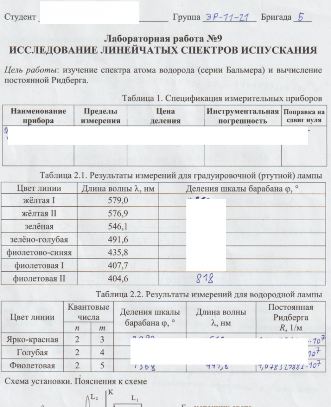 Зачтенная лабораторная работа по физике №9 "Исследование линейчатых спектров испускания"