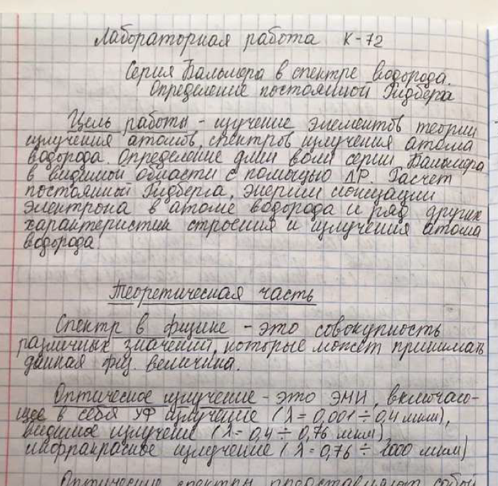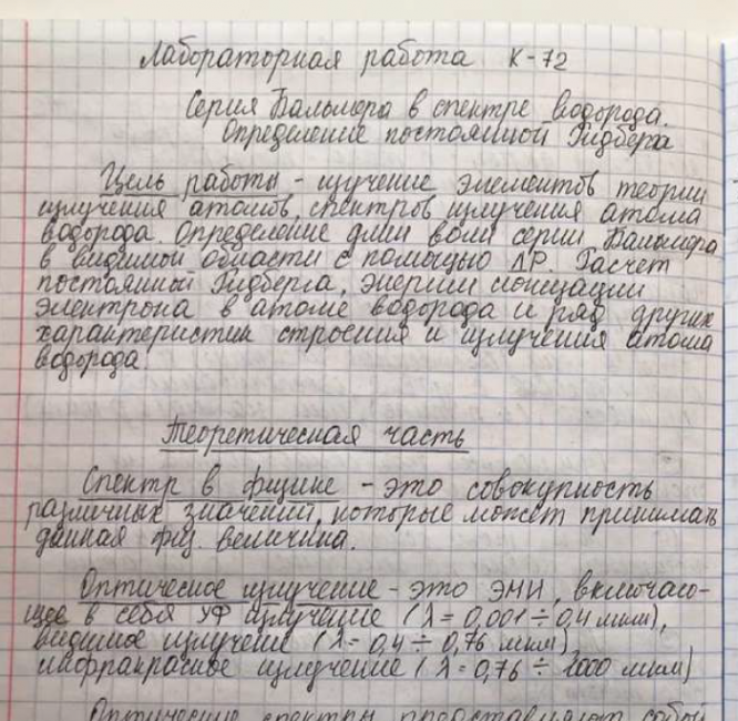 Лабораторная работа К: Серия Бальмера в спектре водорода. Определение постоянной Ридберга вариант 72