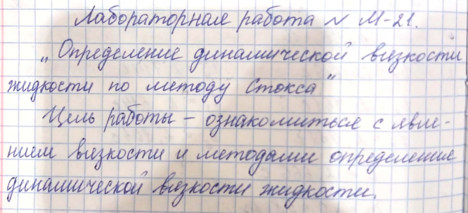 Лабораторная работа М: Определение динамической вязкости жидкости по методу Стокса вариант 21