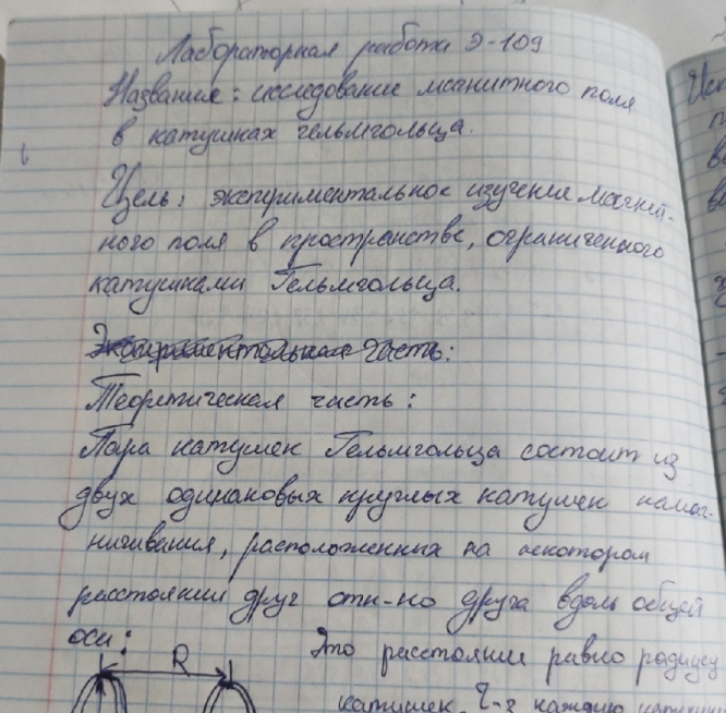 Лабораторная работа Э: Исследование магнитного поля в катушках Гельмгольца вариант 109